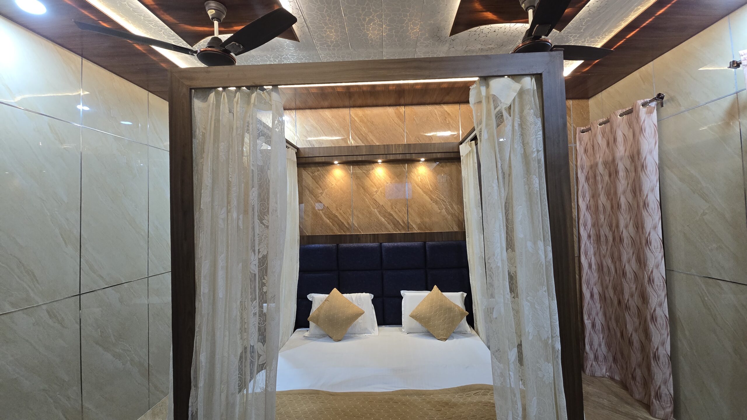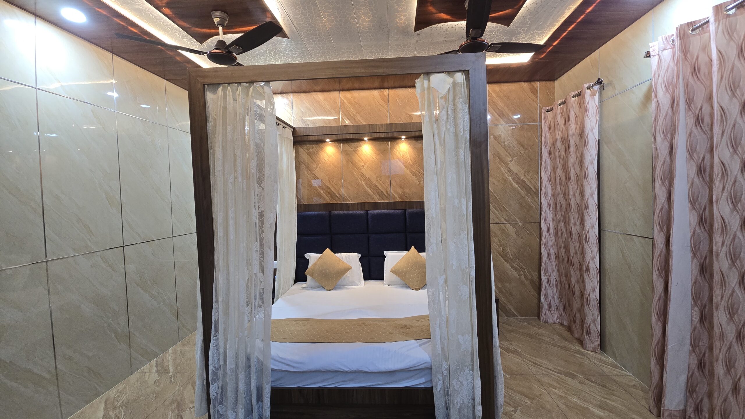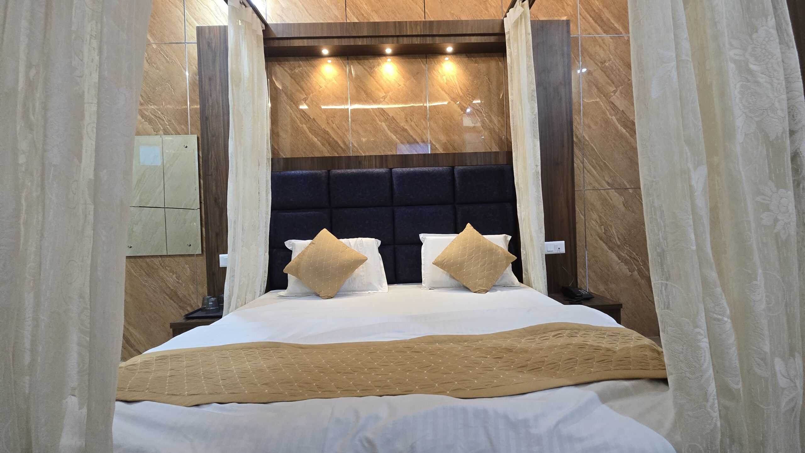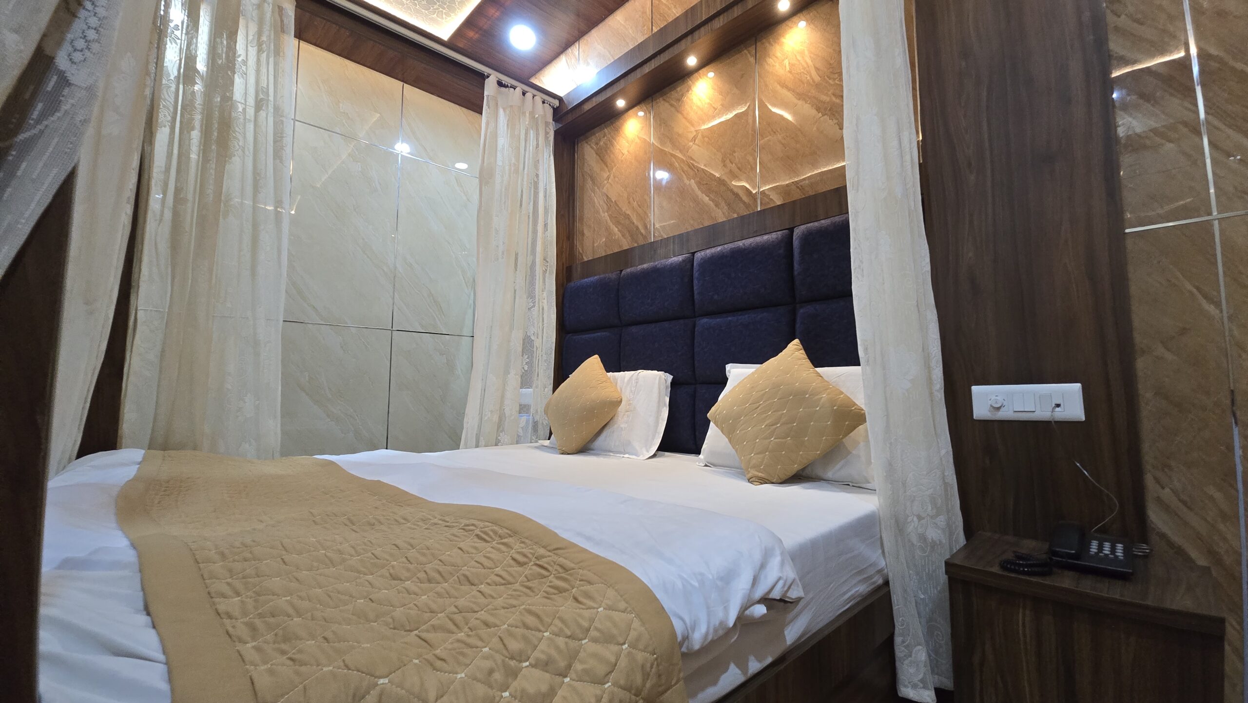 Experience romance and serenity in our Honeymoon Suite Room, specially designed for couples seeking a memorable getaway in Katra. With elegant décor, cozy lighting, and refined furnishings, the suite offers the perfect ambiance for relaxation and togetherness. Enjoy modern comforts, personalized hospitality, and a peaceful atmosphere just moments away from the Vaishno Devi Base. Book your stay today and celebrate your love in comfort and style at New Vishal Guest House.